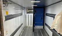 簡易二層式車両を導入しており、冷凍帯・チルド帯の同時配送をしております。